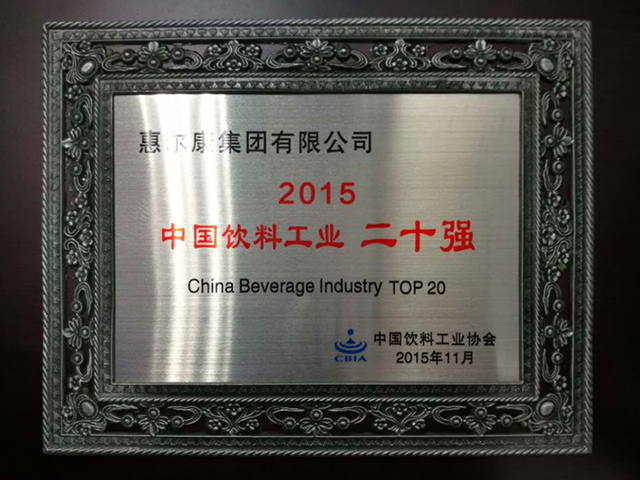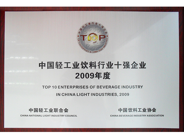 中國(guó)輕工業(yè)飲料企業(yè)十強(qiáng)企業(yè)牌匾