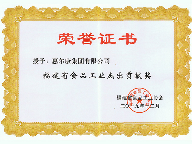 福建省食品工業(yè)協(xié)會(huì)頒發(fā)福建省食品工業(yè)杰出貢獻(xiàn)獎(jiǎng)