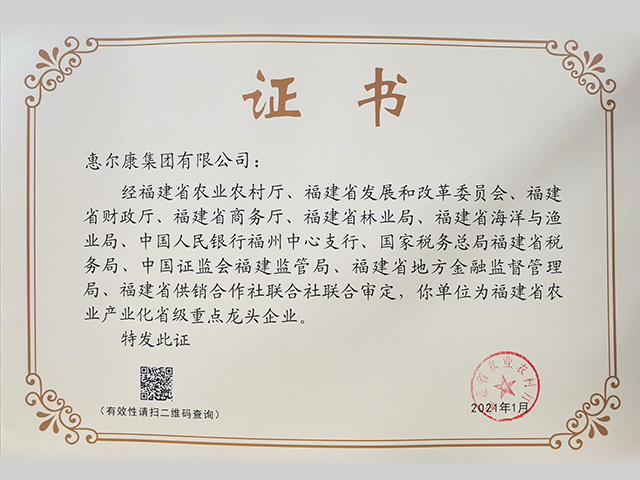 福建省農(nóng)業(yè)產(chǎn)業(yè)化省級(jí)重點(diǎn)龍頭企業(yè)
