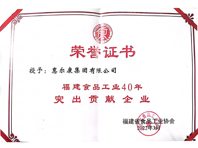 榮獲福建省食品工業(yè)協(xié)會(huì)-福建食品工業(yè)40年突出貢獻(xiàn)企業(yè)