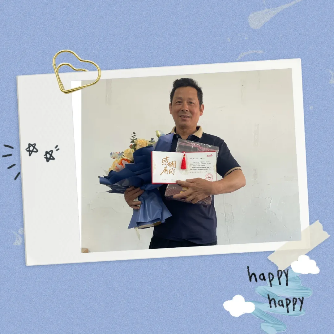 光榮退休啦生管部-錢(qián)洪進(jìn)歲月如歌情懷依舊一束鮮花一份紀(jì)念品一場(chǎng)榮退儀式分享點(diǎn)滴共話美好“歲月如歌彈指過(guò),光陰似水不再來(lái)?!被叵雱偨佑|老錢(qián)的那年,他獲得了“十年優(yōu)秀員工獎(jiǎng)”,臉上洋溢著歡樂(lè),這不僅是他個(gè)...
